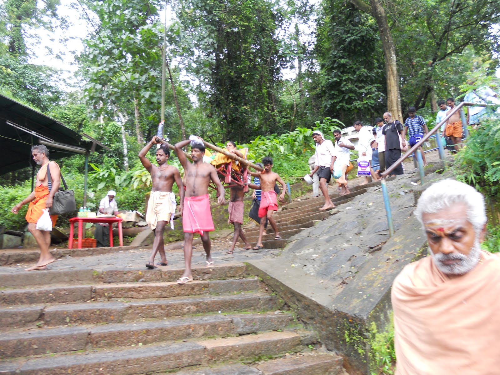 Manikandan, on his way to the forest, came to know the violent behavior of Mahishi (a female demon) in the Devaloka. He went there, fought a battle with Mahishi and Manikandan threw Mahishi down to earth from Devaloka. She fell on the banks of Azhutha River where Manikandan fought with her again.
